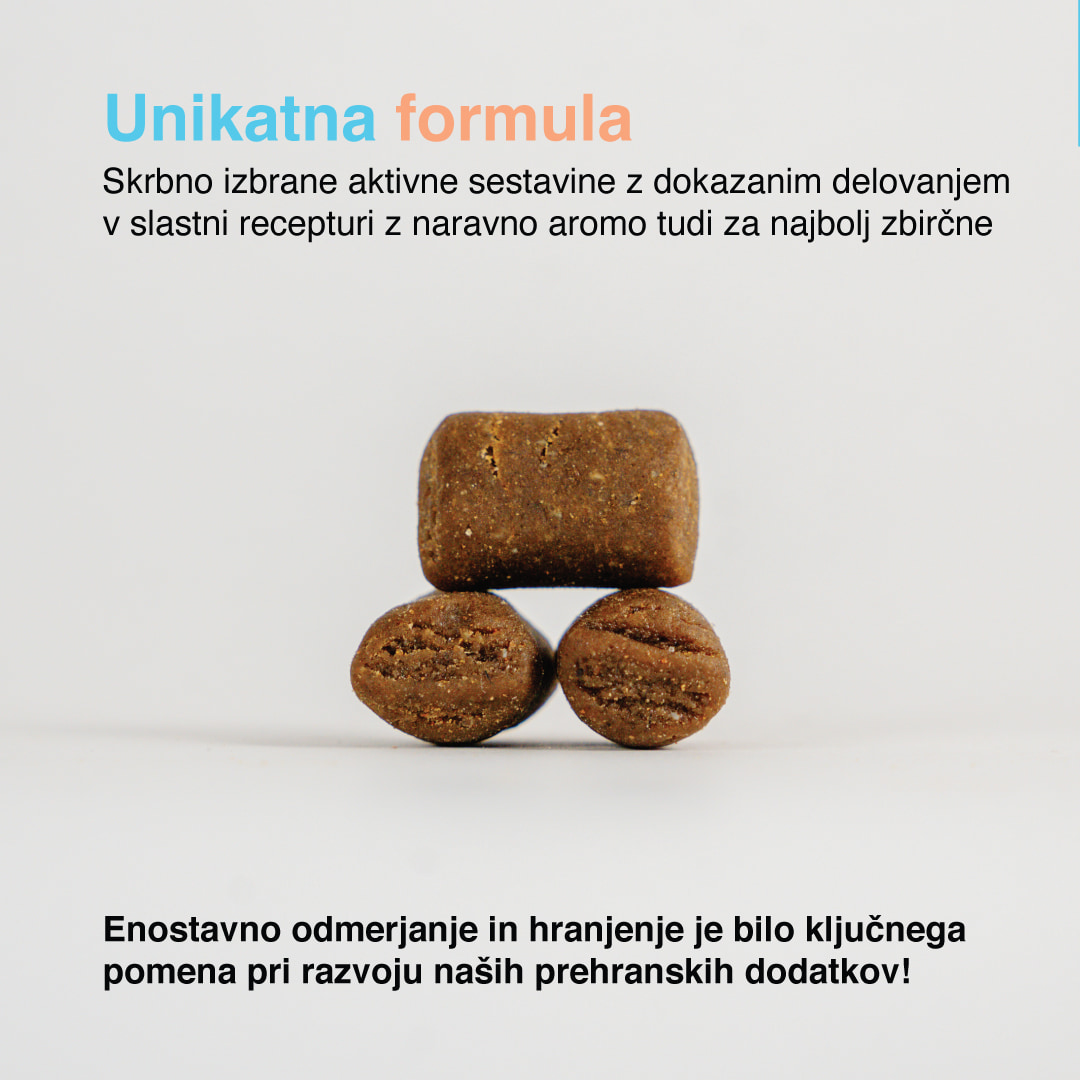 Vsaka sestavina je vključena z razlogom — to support the immune system, skin health and joint mobility — all in one treat.
