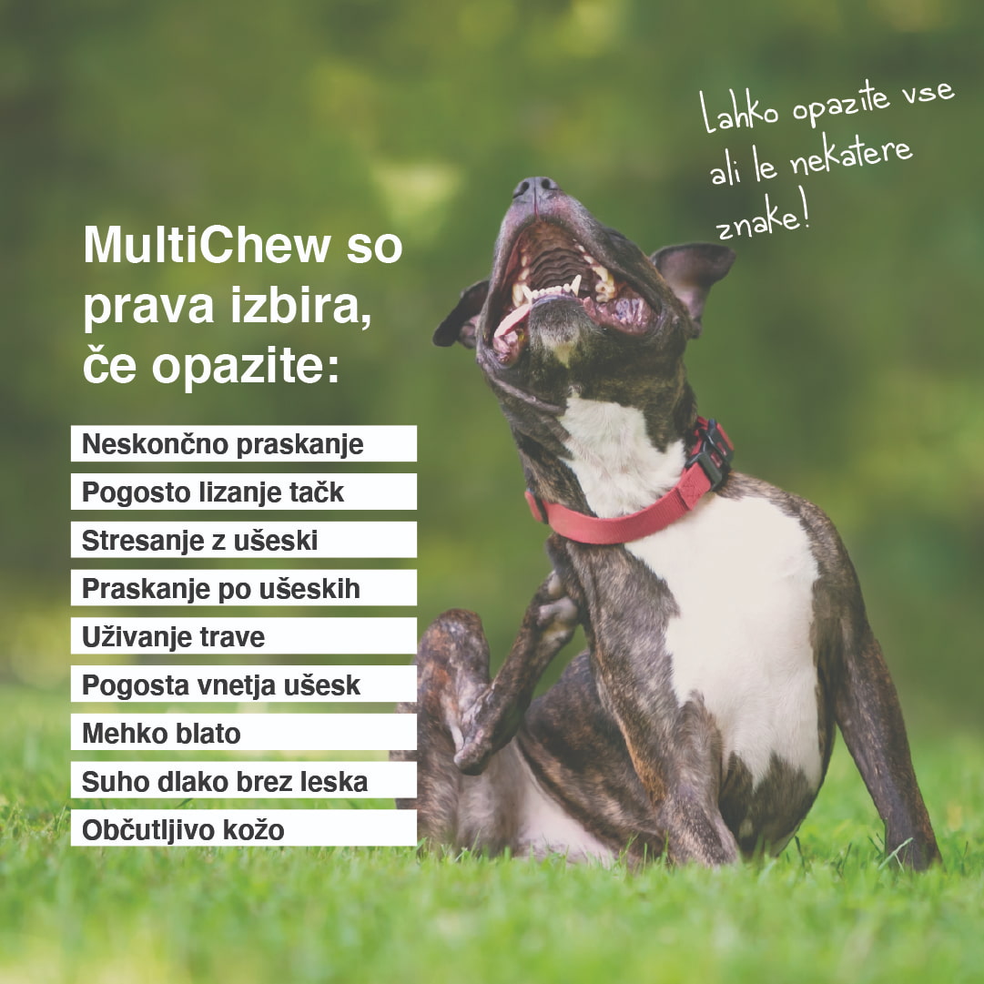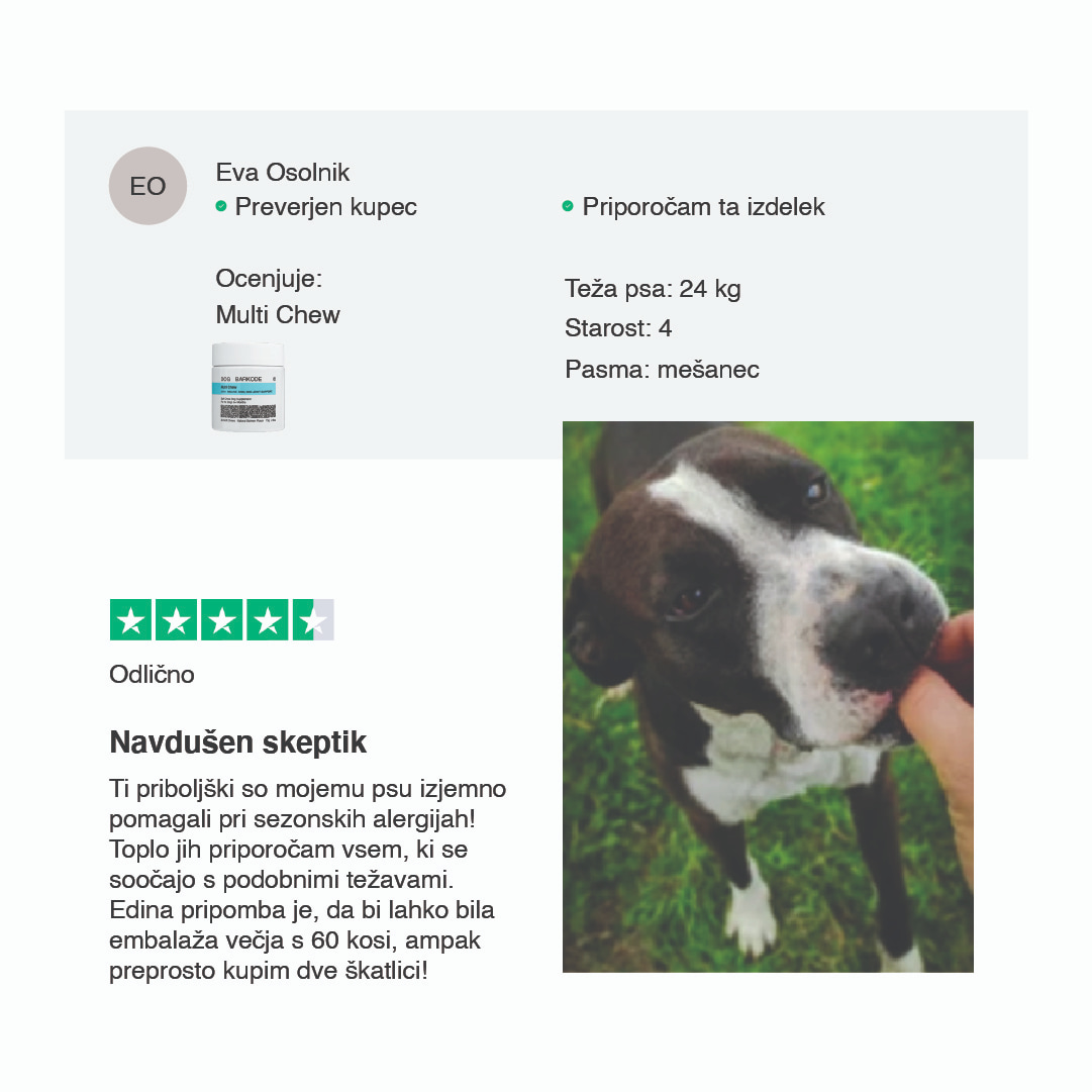 Bruno is 7 and was looking a bit tired — dull coat, occasional tummy issues. A couple of months on the Multi Chew and he looks like a younger dog again.